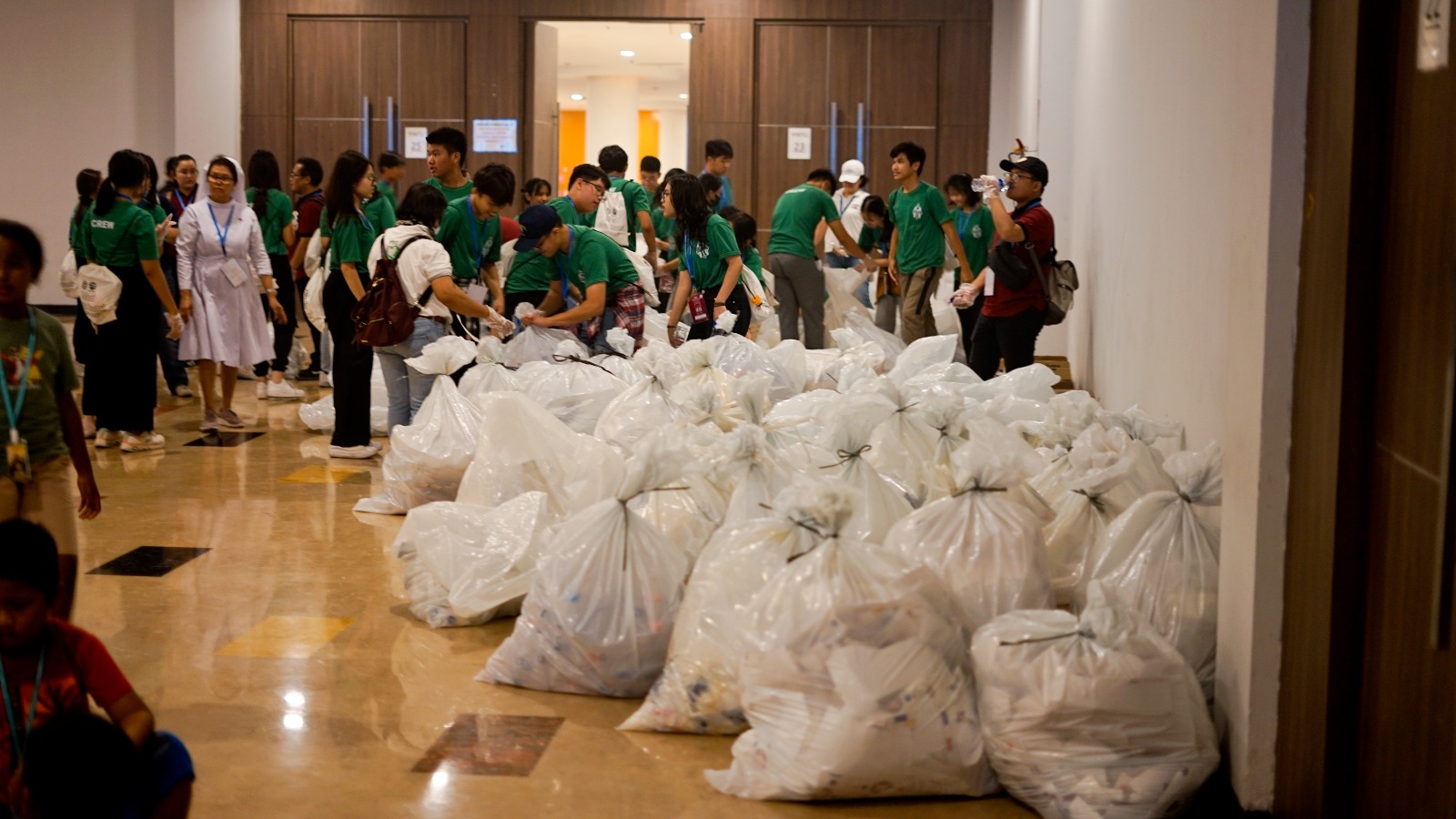 Ada yang menarik dalamrangkaian acara pembukaan yaitu hadirnya 200 peserta didik sebagai Duta Laudato Si. Para peserta didik hadir bergerak memilah sampah botol plastik, kardus, mika dan sendok plastik dari nasi box makan malam para peserta dan hadirin.