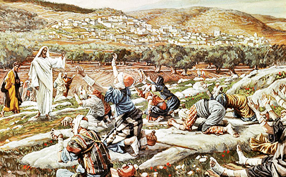 Mat 15:35 Lalu Yesus menyuruh orang banyak itu duduk di tanah.