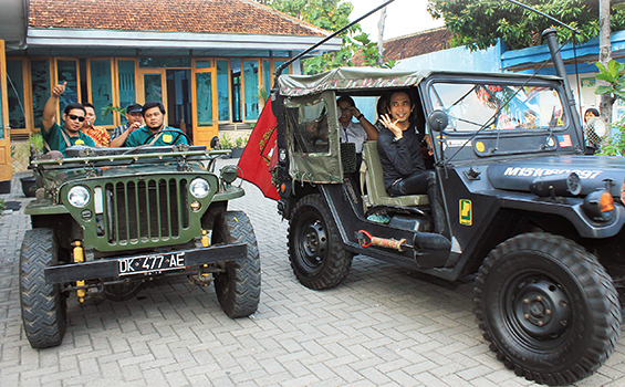 Catholic Jeepers : Musisi Piyu Padi (baju hitam) touring bersama komunitas Omah Poenakawan. ORANG orang muda ini bermarkas di sebuah bangunan arsitektural karya Romo Y.B. Mangunwijaya, yakni Gereja Paroki St Maria Fatima Sragen, Jawa Tengah. Paroki ini masuk Kevikepan Surakarta. Posisi paroki ini berada di ujung timur Surakarta, berbatasan dengan Jawa Timur.