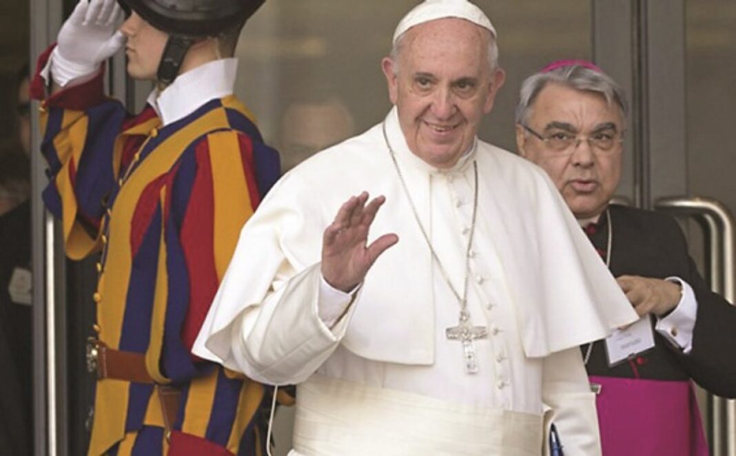 Paus disambut Almoner Lembaga Amal Kepausan, Mgr Konrad Krajewski dan Jendral Jesuit, Pater Adolfo Nicolás SJ, serta beberapa suster Missionaries of Charity (MC).