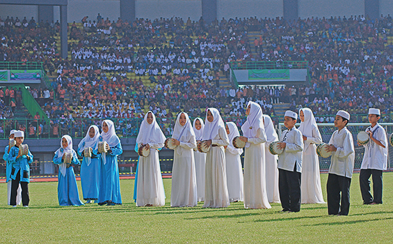 Ribuan umat dari berbagai agama berkumpul di Stadion Candrabhaga Bekasi, Jawa Barat, Sabtu, 16/4. Mereka mengikuti apel kebhinekaan bertajuk “Kami Tinggal, Hidup, dan Berkarya di Bumi Patriot, Nyok Wujudkan Kerukunan, Mengasihi, dan Bertoleran terhadap Perbedaan Keyakinan dalam Memperkokoh Persatuan dan Kesatuan Bangsaâ€. Acara ini diisi dengan aneka tarian yang dibawakan para siswa sekolah se-Kota Bekasi.