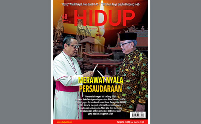 HIDUPKATOLIK.com – RAJUTAN toleransi di negeri ini sedang diterpa ujian. Agama menjadi isu yang mudah dimainkan beberapa pihak untuk kepentingan tertentu. Di tengah ujian itu, masih ada komunitas-komunitas lintas agama yang terus belajar bersama merajut toleransi, salah satunya Forum Kerukunan Umat Beragama (FKUB) DKI Jakarta dengan menggelar Sekolah Agama-agama dan Bina Damai (SABDA). Apa itu SABDA? Dan bagaimana tanggapan para pemuka agama tentang arti toleransi? Simak Sajian Utama edisi ini!