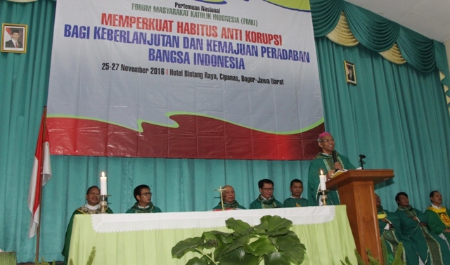 HIDUPKATOLIK.com – PERTEMUAN Forum Masyarakat Katolik Indonesia (Pernas FMKI) ke-10 dibuka dengan Perayaan Ekaristi. Uskup Bogor, Mgr Paskalis Bruno Syukur OFM menjadi selebran dalam perayaan yang diadakan di Hotel Bintang Raya, Cipanas, Bogor, Jawa Barat, Jumat, 26/11.