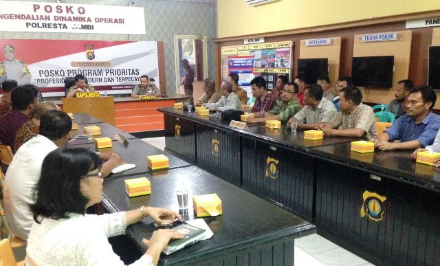 HIDUPKATOLIK.com – KURANG lebih 11 hari lagi umat Kristiani akan merayakan hari Natal pada 25 Desember nanti. Untuk mengantisipasi keamanan penyelenggaraan perayaan Natal itu pihak Kepolisian Republik Indonesia telah melakukan persiapan-persiapan. Salah satunya adalah persiapan yang dilakukan Polres Jambi pada Rabu, 14/12. Di ruang Kabag Ops Polresta Jambi, Kapolresta Jambi Kombes Pol Bernard Sibarani didampingi Kabag Ops Polresta Jambi Kompol Gadug Kurniawan memimpin rapat Koordinasi Lintas Sektoral – Operasi Lilin 2016 yang dihadiri beberapa pemuka umat Kristiani se-Kota Jambi.