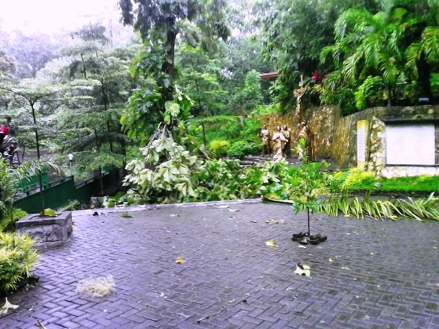 HIDUPKATOLIK.com – HUJAN deras yang mengguyur Yogyakarta dan sekitarnya mengakibatkan beberapa pohon tumbang di komplek Gua Maria Sendang Jatiningsih. Dari beberapa informasi dan foto yang diterima di redaksi HIDUP terlihat pohon yang berada di tengah komplek doa tumbang.
