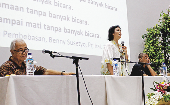 Romo Benny yang disebut Romo Is juga hadir dan menjadi pembicara. Kata Romo Benny, masih ada umat Katolik saat ini yang merasa minder karena menjadi kaum minoritas di negeri ini. Ia mendorong, pada era di gital seperti sekarang, sebagai minoritas tak cukup hanya diam dan bersuara lewat media sosial. “Sudah kuno hanya share renungan atau pendapat dari grup sebelah ke grup lain. Peka dan beranilah berekspresi dengan identitas kita,†serunya.