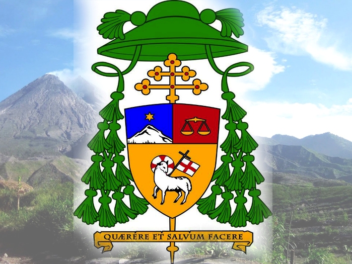 Ketiga lambang ini dirangkai dalam sebuah perisai. Di atas perisai ini ditempatkan galero atau topi khas klerus berwarna hijau. Terdapat sepuluh jumbai pada masing-masing sisinya.