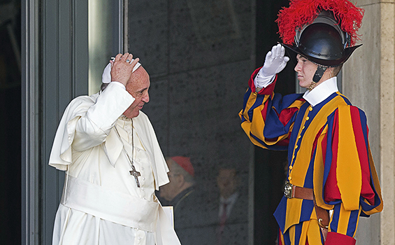 Bertepatan dengan momen ini, Paus menerima Presiden Konfederasi Swiss, Doris Leuthard, di Istana Apostolik di Vatikan. Keduanya berdiskusi mengenai penguatan hubungan yang sudah baik antara Takhta Suci dan Swiss. Keduanya juga membahas tema migran, tantangan dunia kerja, terorisme, lingkungan hidup, serta masa depan Eropa.