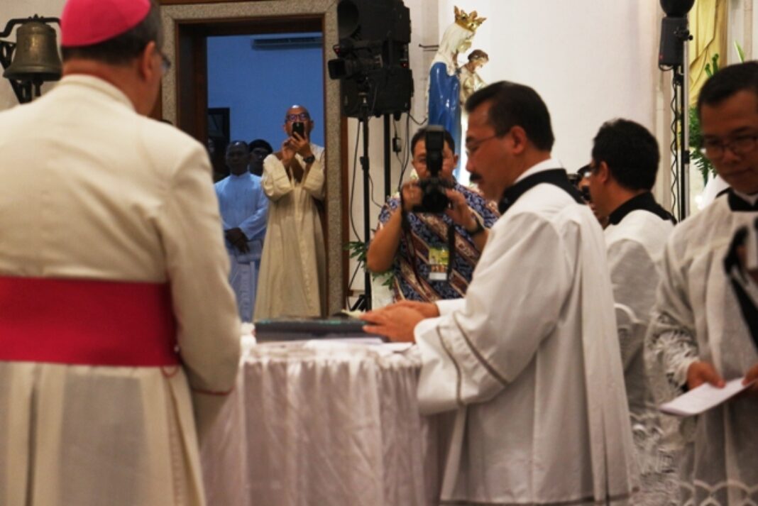 HIDUJATOLIK.com – PARA uskup dari seluruh Indonesia, para imam, biarawan dan biarawati, serta umat yang ikut serta dalam Salve Agung menjelang pentahbisan Uskup Agung Semarang. Pada kesempatan ini Mgr Robertus Rubiyatmoko menyampaikan janji setia sebagai Uskup Agung Semarang di Katedral St Perawan Maria Ratu Rosario Suci, Randusari Semarang, 18/5.