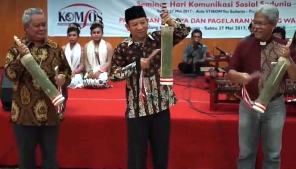 HIDUPKATOLIK.com – BUPATI Banyumas, Achmad Husein, membuka Pekan Komunikasi Sosial Nasional (PKSN) 2017 di Aula Keuskupan Purwokerto, Senin, 22/5. Pembukaan acara PKSN yang berlangsung pada 22-28 Mei 2017 itu ditandai dengan pemukulan kentongan bambu oleh Bupati, didamping Ketua Komisi Komsos Konferensi Waligereja (KWI) Â Mgr Hilarion Datus Lega dan Administrator Keuskupan Purwokerto Romo Tarsisius Puryanto, seperti disampaikan dalam siaran berita dari Komsos KWI kepada HIDUPKATOLIK.com, Senin, (22/5).