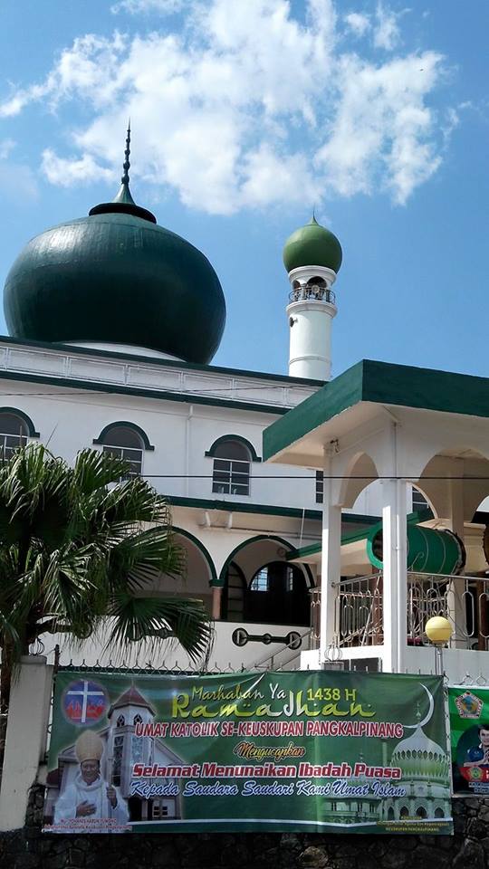Untuk menjaga harmonisasi dan kedamaian di Pangkalpinang, Keuskupan Pangkalpinang melalui Komisi HAK-nya selalu membangun relasi, menjaga dan merawat kerukunan dengan saudara saudari umat Muslim. Cara-cara yang mereka lakukan selalu dirancang bersama, misalnya, saling berkunjung saat hari besar agama maupun saling membuat ucapan kecil seperti yang ada dalam spanduk yang terpasang di Masjid Jamik tersebut.