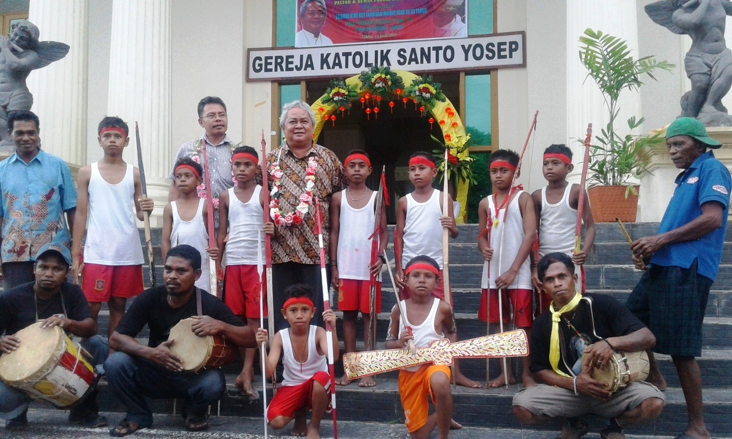 HIDUPKATOLIK.com – Entah mendapat inspirasi apa, Uskup Manokwari-Sorong (KMS) Mgr Datus Hilarion Lega memilih untuk mensyukuri HUT ke-33 Sakramen Imamatnya bersama umat di kawasan Tim Pastoral Wilayah (TPW) Fakfak, Papua Barat. Acara yang digelar di Gereja Santo Yosef Fakfak, Kamis sore, 15/6 ini, dihadiri oleh ribuan umat, para pastor, dan biarawan-biarawati di seluruh TPW Fakfak. Selain merayakan Misa Konselebrasi dengan beberapa imam, Mgr Datus juga dijamu oleh umat dengan aneka persembahan dalam bentuk pagelaran aneka budaya yang membentuk Gereja di Fakfak.