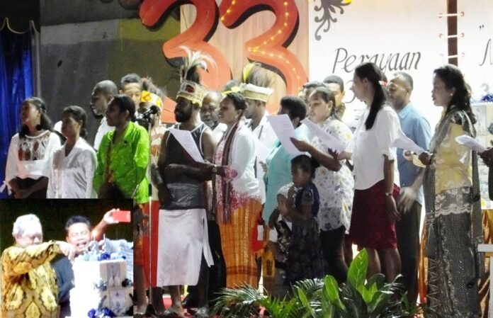 HIDUPKATOLIK.com – Perayaan HUT ke-33 tahun Sakramen Imamat Uskup Manokwari-Sorong (KMS), Mgr Datus Hilarion Lega terasa begitu semarak. Selain merayakan Misa Konselebrasi bersama ribuan umat di Gereja Santo Yosef Fakfak, Papua Barat, umat di seluruh kawasan Tim Pastoral Wilayah (TPW) Fakfak juga mengadakan acara malam pagelaran budaya dan ramah tamah Kamis malam, 15/6. Mereka secara swadaya menyelenggarakan perhelatan akbar bersama gembala mereka. Salah satu yang istimewa adalah seorang umat menciptakan lagu khusus bagi Mgr Datus.