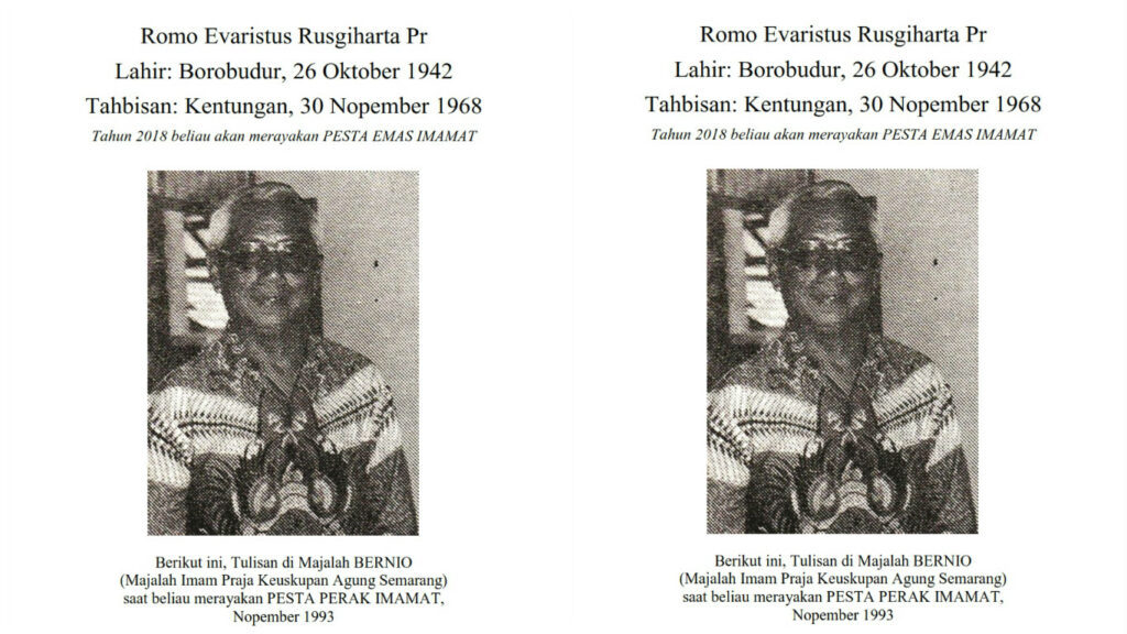 HIDUPKATOLIK.com – HANYA dalam dua atau tiga hari, kabar duka kembali muncul dari Keuskupan Agung Semarang (KAS). Sesudah  Romo Evaristus Rusgiarta yang wafat di usia 75 tahun pada hari Minggu, 02 Juli 2017 yang lalu, kini, KAS kehilangan seorang imamnya lagi, yakni Romo Yoseph Suyatno Hadiatmojo yang wafat pada hari Selasa, 4/7. Keduanya meninggal dunia sesudah menderita sakit dan menjalani perawatan untuk upaya kesembuhan. Namun Tuhan menghendaki lain: memanggil mereka kembali ke pangkuan-Nya di surga.