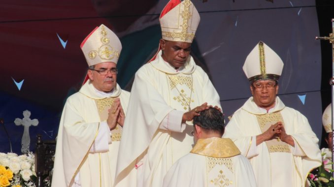 HIDUPKATOLIK.com – USKUP Keuskupan Manado yang baru Mgr Benedictus Estephanus Rolly Untu MSC ditahbiskan oleh Duta Besar Vatikan Mgr Antonio Guido Filipazzi di Stadion Maesa Tondano, Kabupaten Minahasa, Sulawesi Utara (Sulut), Sabtu, 8/7.