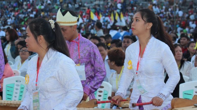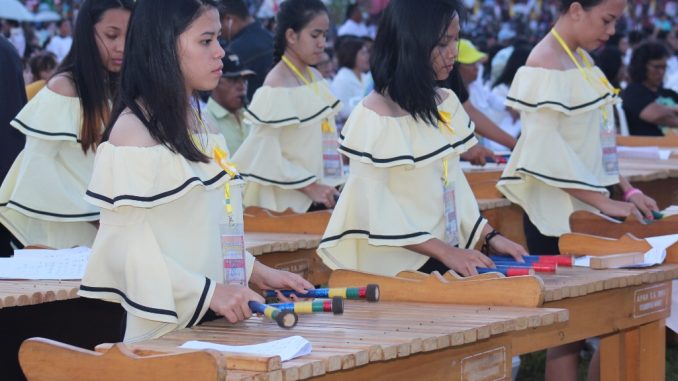 Dalam acara pentahbisan hari itu, suasana menjadi semarak dengan iringan musik kolintang sebagai pengiring aneka lagu Liturgi Pentahbisan maupun pengisi acara. Para pemain kolintang berjumlah sekitar 90 orang itu tampak antusias memainkan kolintang demi suksesnya acara pentahbisan hari itu. Berikut beberapa foto aktivitas para pemain kolintang tersebut: