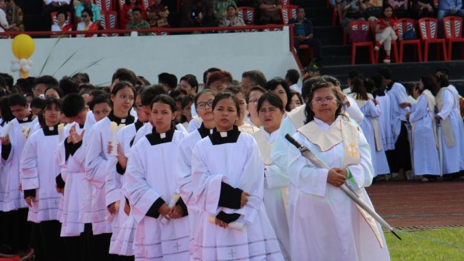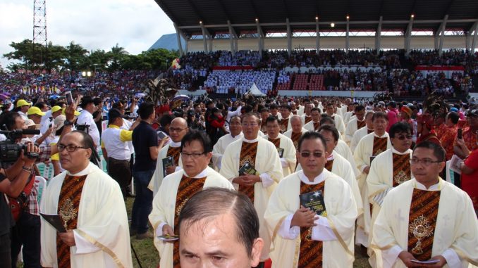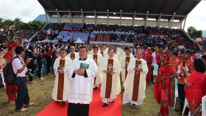 HIDUPKATOLIK.com – HARI, Sabtu, 8/7, merupakan hari yang membahagiakan dan bersejarah bagi Gereja Keuskupan Manado. Setelah dinanti, tiba saatnya waktu pentahbisan Mgr Benedictus Estephanus Rolly Untu MSC sebagai Uskup Keuskupan Manado menggantikan Mgr Joseph Suwatan MSC yang telah menggembalakan umat Keuskupan Manado selama 27 tahun.