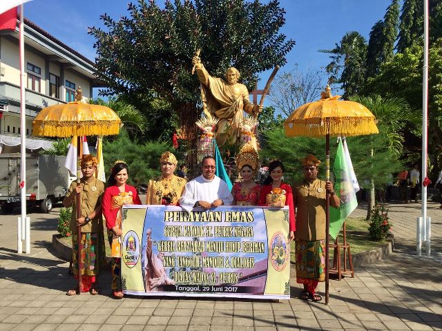 HIDUPKATOLIK.com – PAROKI St Petrus Negara, Keuskupan Denpasar merayakan ulang tahun ke-50, Kamis, 29/6. Donatus Openg, dalam buku kenangan 50 Tahun Gereja Katolik St Petrus Negara-Jembrana, bersyukur Gereja Katolik masih berdiri dan sanggup menghadapi aneka peristiwa hingga kini. “Berkat karunia Allah, umat Katolik Negara mampu melewati 50 tahun perjalanan karya pastoral di kota ini,†ungkap ketua panitia perayaan itu.