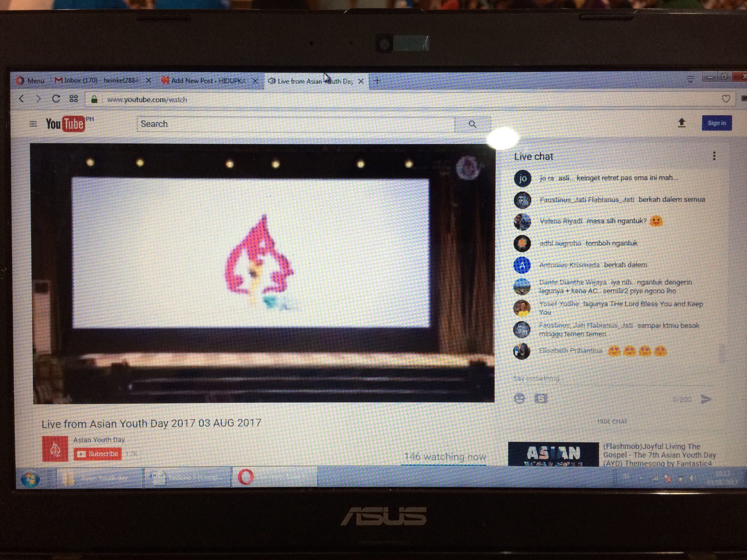 HIDUPKATOLIK.com – DI hari kedua puncak Asian Youth Day 2017 (AYD7) di Yogyakarta, setiap momen yang berlangsung selama pertemuan anak muda se-Asia dapat disaksikan live di youtube. Panitia AYD7 bekerjasama dengan Citraweb Nusa Infomedia untuk menyiapkan tayangan langsung sepanjang penyelenggaraan AYD7.