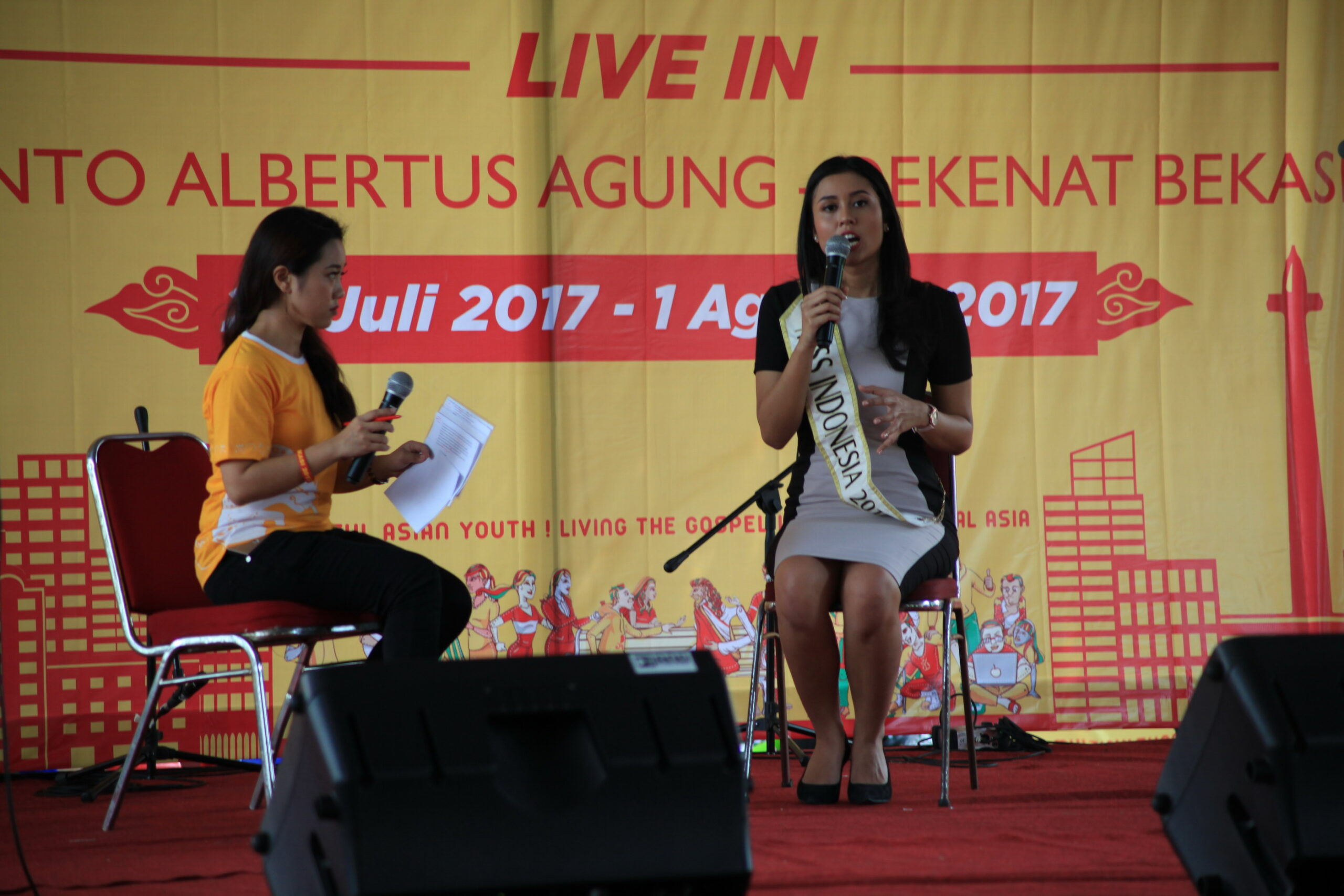 Maria Harfanti menjadi pembicara, saat talkshow Days in Diocese-Asian Youth Day 2017 Dekenat Bekasi, Keuskupan Agung Jakarta (A. Aditya Mahendra)