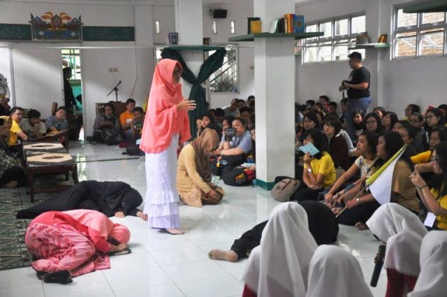 Para santri Pondok Pesantren Mahasiswa An Najah Baturraden sedang mementaskan tembang dan puisi di hadapan para peserta AYD-DID Keuskupan Purwokerto. [www.komkeppurwokerto.net]