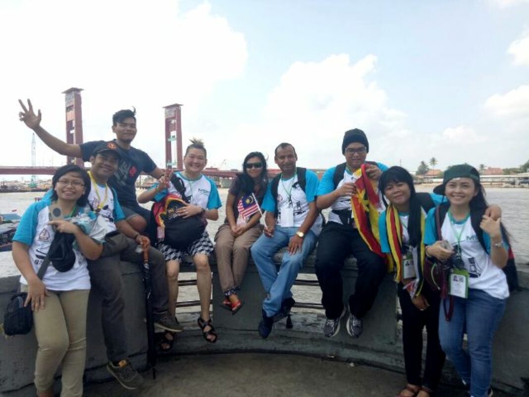 Beberapa peserta DID-AYD 2017 Palembang berfoto bersama di Jembatan Ampera Palembang. [Dok. Pribadi]