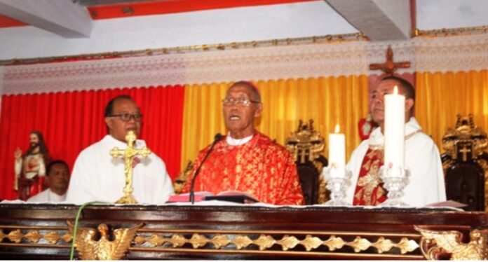 HIDUPKATOLIK.com – PERAYAAN Misa kenegaraan adalah sebuah sinode atau upaya berjalan bersama untuk menempuh satu tujuan. Lewat Misa kenegaraan, dengan berlandaskan iman yang teguh, umat diharapkan bisa bekerjasama dengan pemerintah dalam pembangunan bangsa dan negara untuk mencapai tujuan kemakmuran dan kesejahteraan seperti tertuang dalam UUD 1945. Demikian penegasan Uskup Emeritus Keuskupan Bogor Mgr Cosmas Michael Angkur OFM pada khotbah Misa Kenegaraan HUT Kemerdekaan RI ke-72 di Gereja Paroki Bunda Segala Bangsa, Wae Kesambi, Labuan Bajo, Nusa Tenggara Timur (NTT), Selasa, 15/8.