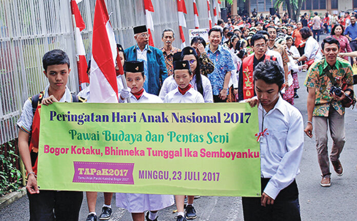 Sekitar 600 anak hadir untuk berjalan bersama dalam pawai budaya dari SD Regina Pacis menuju Balai Kota Bogor dan ditutup di komplek Sekolah Budi Mulia Bogor. Langkah kaki anak-anak dengan baju khas dari berbagai daerah di Indonesia menambah meriah kegiatan ini. Asisten Administrasi Umum Pemerintah Kota Bogor, Arif Budianto hadir mewakili Wali Kota Bogor Bima Arya Sugiarto. Ia menyampaikan bahwa Pemkot Bogor menyambut baik acara bernapas nasionalisme dan kebhinnekaan. “Kami, dari Pemkot berharap, acara ini dapat memperkuat ikatan tali persaudaraan dan persahabatan yang telah terjalin antarumat beragama di Kota Bogor. Kami sadar bahwa kehidupan berbangsa, beragama, dan bernegara senantiasa dinamis. Mari kita kawal dan jaga agar tetap aman dan damai,” katanya.