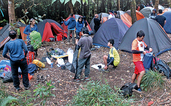 Pada hari kedua, para peserta tampak sibuk menyiapkan tenda yang akan digunakan sebagai tempat untuk melepas letih dan lesu setelah berjalan mendaki. Kesempatan ini mereka gunakan juga untuk mengumpulkan semangat serta tenaga guna melanjutkan pendakian menuju puncak Gede Pangrango.
