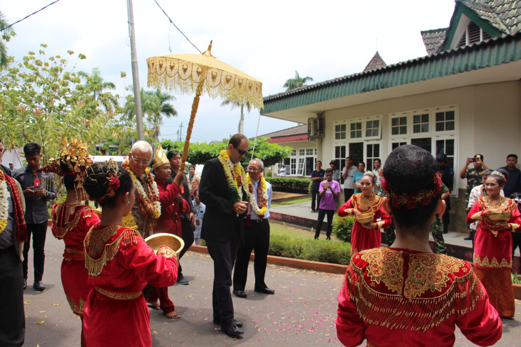 Rombongan para uskup dan nunciatura ini disambut dengan tarian Sepintu Sedulang; tarian khas penyambutan tamu Pangkalpinang. Di akhir tarian, para uskup disuguhi sirih pinang. Para uskup kemudian beranjak ke ruang makan dan menyantap makan siang. Setelah itu mereka akan diantar ke penginapan sebelum mengikuti Salve Agung sore ini di Katedral Pangkalpinang.