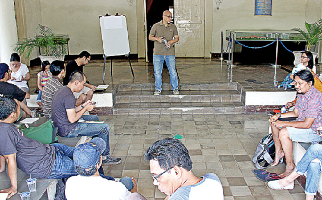 Seorang pria berkepala plontos mondar-mandir di halaman Gedung Raden Saleh Rumah Sakit PGI Cikini, Jakarta Pusat. Ia menggenggam clipboard, kertas gambar, pena, dan telepon selular. Tanpa suara, ia mendekat dan mengamati beberapa rekan yang duduk menyebar di halaman gedung itu. Mereka sedang menggambar gedung dan pohon yang ada di sekitar mereka. Beberapa kali, dengan telepon selularnya, si pria berkepala plontos itu mengabadikan rekan-rekannya yang sedang asik menggoreskan pena di kertas gambar.