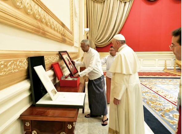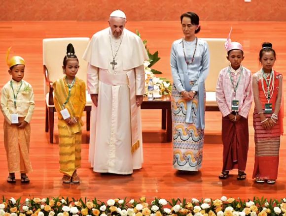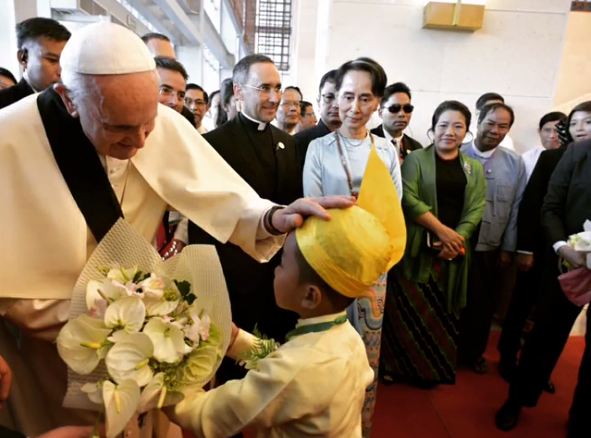 Pertemuan Paus dengan pemimpin sipil Aung San Suu Kyi di dalam kunjungan hari pertamanya, Selasa (28/11/2017) lalu bersama otoritas Myanmar lainnya di Naypyitaw itu merupakan kunjungan paling dinanti-nanti banyak pihak mengingat protes keras atas tindakan keras militer Myanmar terhadap warga sipil muslim Rohingya. Bahkan pemerintah AS dan PBB pun telah menyebut tindakan pemerintah Myanmar tersebut sebagai kampanye “pembersihan etnis” untuk mengusir Rohingya dari negara bagian Rakhine bagian utara. (dikutip dari laman mediaindonesia.com dan theguardian.com).