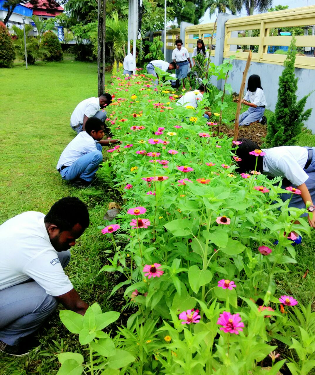 Saat mengajar agama dengan tema lingkungan hidup, saya mengajak anak-anak untuk membuat kebun tanaman herbal. Saat mengajar tentang keanekaragaman hayati di kelas biologi peminatan kelas X, saya mengajak anak-anak untuk mencermati bunga-bunga Zinnia elegans dan Impatiens balsamnia sebagai contoh-contoh jenis tanaman yang mengalami variasi genetik.