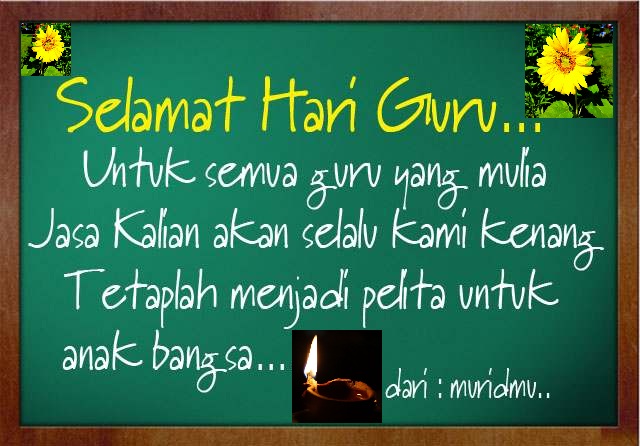 Hari Guru Nasional yang kita peringati disetiap tanggal 25 November dan Hari Guru Sedunia disetiap tanggal 5 Oktober (sejak tahun 1994, dikutip Wikipedia), seolah ingin mengingatkan kita untuk memberikan dukungan kepada para guru di seluruh dunia dan meyakinkan mereka bahwa keberlangsungan generasi pada masa depan ditentukan oleh guru.