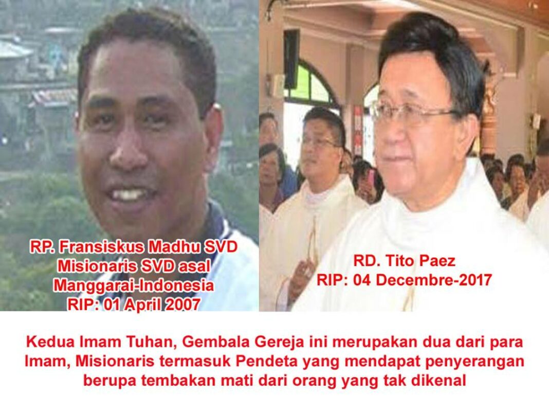 Catatan hitam atas penyerangan pada para imam, misionaris semakin menjadi sebuah ancaman serius ketika pada Senin malam, 04 Desember 2017; Pastor Tito Paez (72 th) imam Diosesan dari Keuskupan San Jose ditembak mati oleh empat orang bersenjata tak dikenal ketika sedang mengendarai mobil dalam perjalanan pulang dari sebuah misi kemanusiaan: membantu memfasilitasi pembebasan seorang tahanan politik di penjara Cabanatuan- Nueva Ecija.