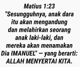 “Sesungguhnya, anak dara itu akan mengandung dan melahirkan seorang anak laki-laki, dan mereka akan menamakan Dia Imanuel yang berarti: Allah menyertai kita.” (Ayat 23 dari Bacaan Mat 1: 18-24 pada Peringatan St. Flannan, St. Winebald)