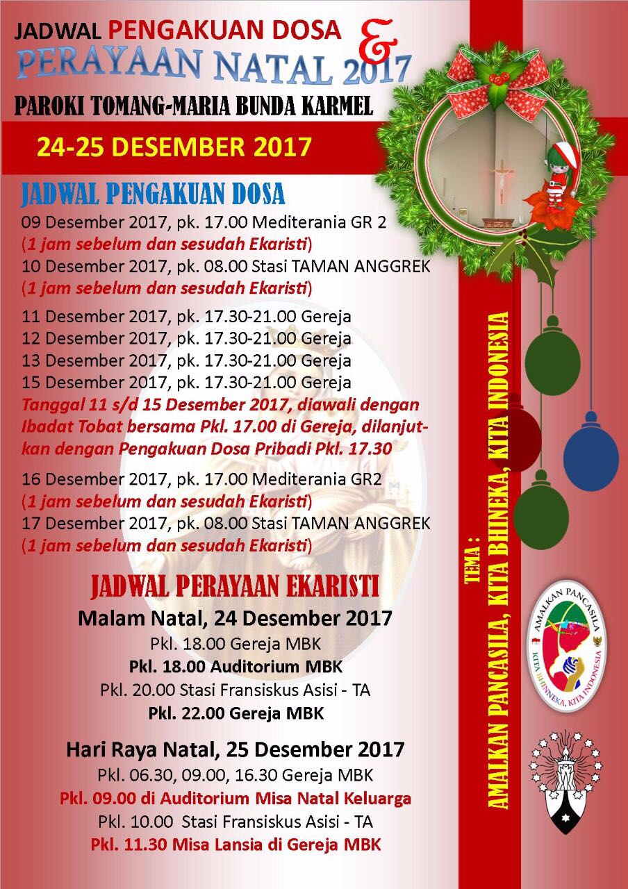 Senin, 25/12/17: 07.00, 09.00 (PONTIFIKAL), 11.00 (MISA KELUARGA), 17.00
