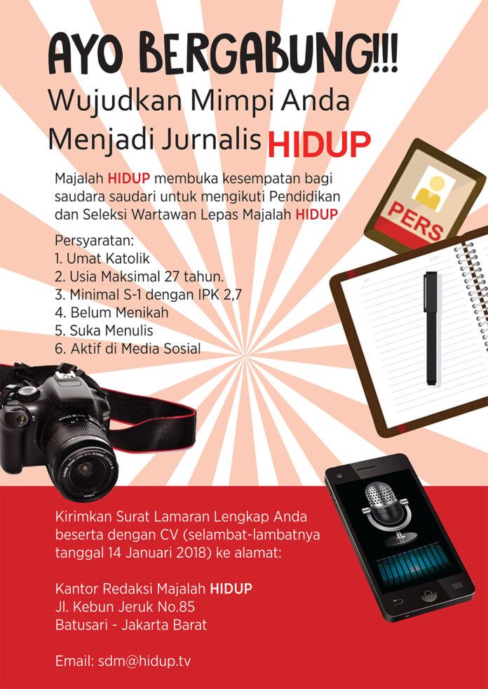 HIDUPKATOLIK.com – Ayo Bergabung! Wujudkan Mimpi Anda menjadi Jurnalis HIDUP