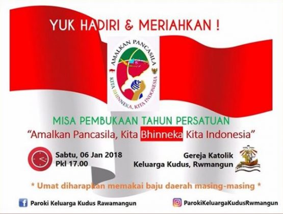 - gereja Keluarga Kudus, paroki Rawamangun, dimulai pada Sabtu, 6 Januari 2018 pukul 17.00 WIB, dimana umat diharapkan memakai baju daerah masing-masing