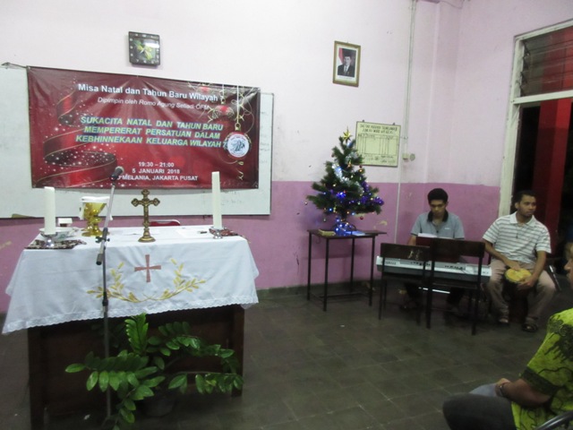 HIDUPKATOLIK.com – Mengawali tahun baru 2018, warga wilayah 7 paroki Kramat telah mengadakan misa Natal dan Tahun Baru pada Jumat lalu, 5 Januari 2018, dimulai dari jam 7.30 malam hingga jam 9 malam, di SD Melania, dipimpin oleh Romo Agung, OFM dan diikuti oleh 87 warga lingkungan Mikael, Gabriel dan Raphael.