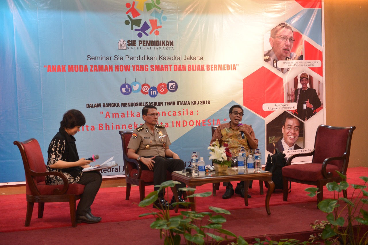 HIDUPKATOLIK.com – Seksi Pendidikan Orang Muda Katolik (OMK) Paroki Katedral-Gereja St.Maria Diangkat ke Surga Jakarta menyelenggarakan Seminar “Anak Muda Zaman Now yang Smart dan Bijak Bermedia” pada Sabtu, 3/2, di ruangan St. Yohanes.