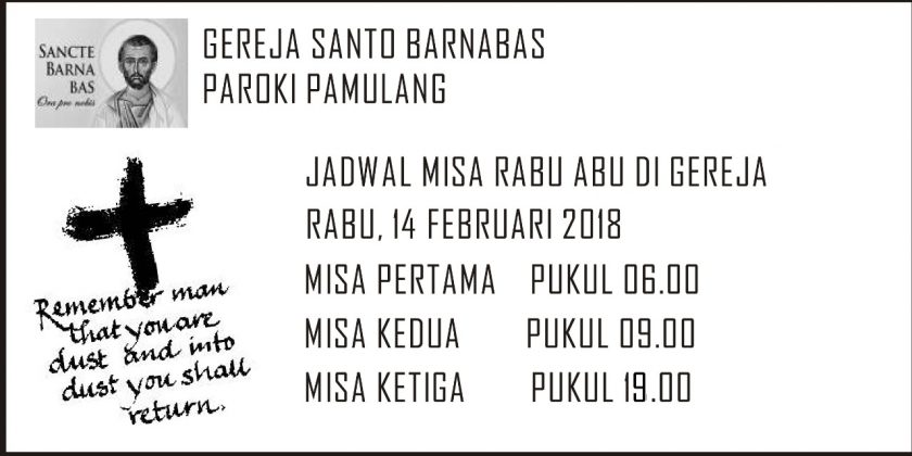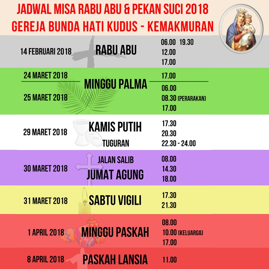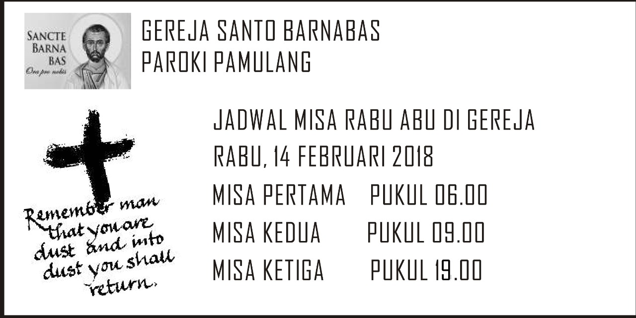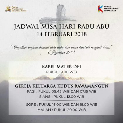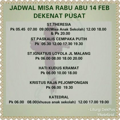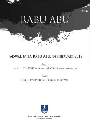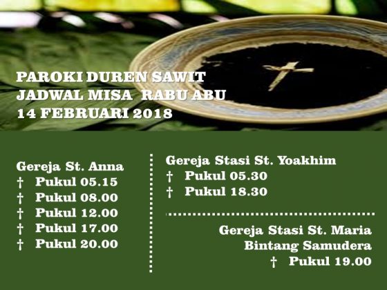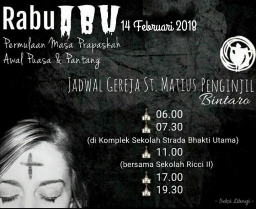 Berikut ini jadwal misa Rabu Abu 2018 di Jakarta dan sekitarnya: