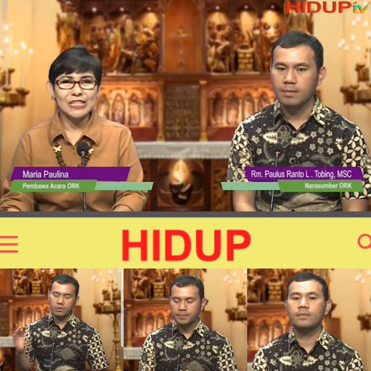 (SAKSIKANLAH Program “Oase Rohani Katolik” KAMIS ini bersama RM. PAULUS RANTO LUMBAN TOBING, SVD di siaran TELEVISI: www.hidup.tv pk 05.00; 08.00; 11.00, 14.00 WIB, dst; Dengarkanlah Siaran RADIO: Mandarin Station 98.3 FM pk.05.30 WIB klik www.radio.kaj.or.id pk.06.00; 12.00; 18.00 WIB). Silakan share👍