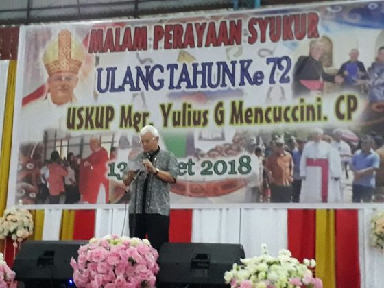 HIDUPKATOLIK.com – Perayaan ulang tahun ke-72, Mgr. Yulius Mencuccini, Uskup Keuskupan Sanggau berlangsung pada Selasa, 13/03 lalu. Acara dilaksanakan di dua tempat yang berbeda. Pada pagi hari, perayaan dilaksanakan di aula Keuskupan. Sedangkan pada malam hari, perayaan dilaksanakan di Aula Taman Rekreasi Penanjung, Paroki Sekadau, Gereja St Petrus dan Paulus.