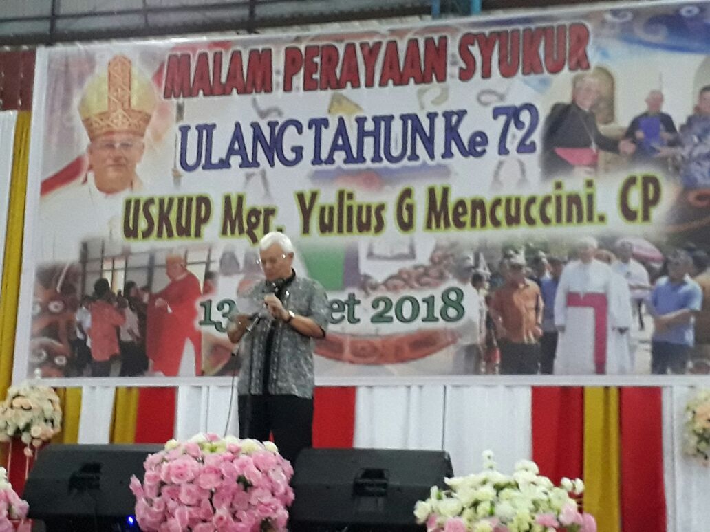 Dalam sambutannya, Mgr. Yulius Mencuccini menyampaikan ucapan syukur kepada Allah atas usia beliau hingga saat ini. Di usia yang tidak lagi muda, beliau ingin tetap memberikan pelayanan yang terbaik kepada seluruh umat di Keuskupan Sanggau.
