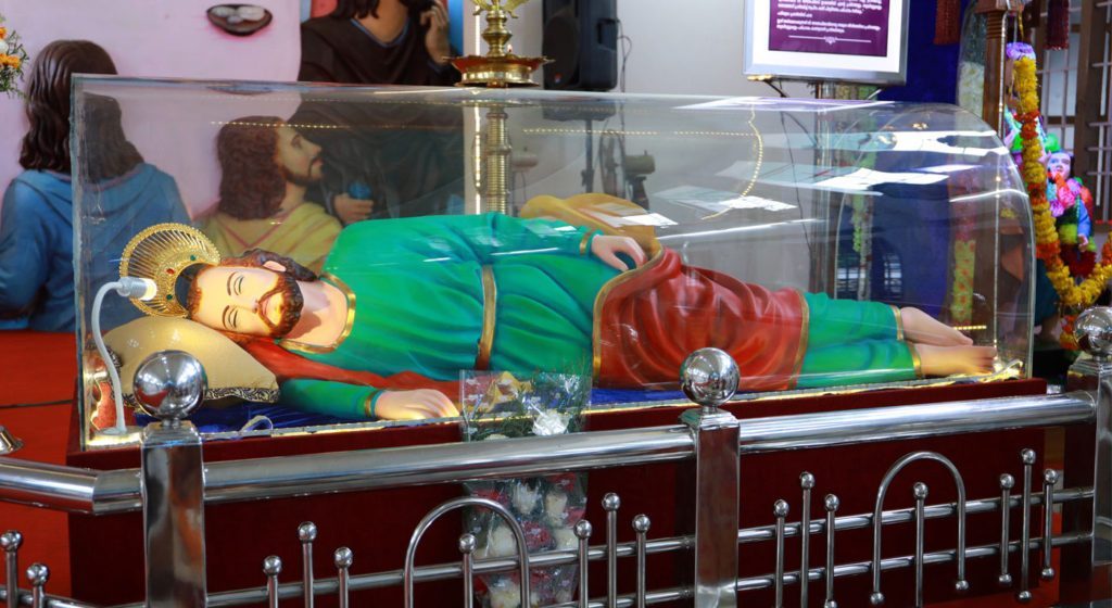 Gereja yang dipersembahkan khusus dalam perlindungan St Yosef tidur baru terjadi di Paroki Vadakkekotta, Keuskupan Cochin, India. Paroki ini sejak semula berpelindung St Yosef. Namun, sejak Paus Fransiskus memperkenalkan patung St Yosef, Kepala Paroki Vadakkekotta Pastor Jolly Thapalodath getol mencari informasi seputar patung tersebut. Pastor Jolly terkesan dengan berbagai kisah yang didapatnya.