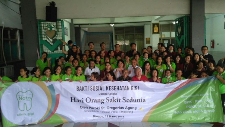 HIDUPKATOLIK.com – Bakti Sosial (baksos) memperingati Hari Orang Sakit sedunia 2018 diselenggarakan oleh Paroki Santo Gregorius Agung, bekerja sama dengan BPK PKK-KAJ (Badan Pelayanan Keuskupan Pembaruan Karismatik Katolik Keuskupan Agung Jakarta), Persekutuan Doa se-Dekenat Tangerang, Persekutuan Doa Usahawan Katolik Indonesia (Perduki), Klinik Gigi Dokter Noto & team, para dokter umum yang tergabung dalam PD Santo Lukas serta WALUBI.