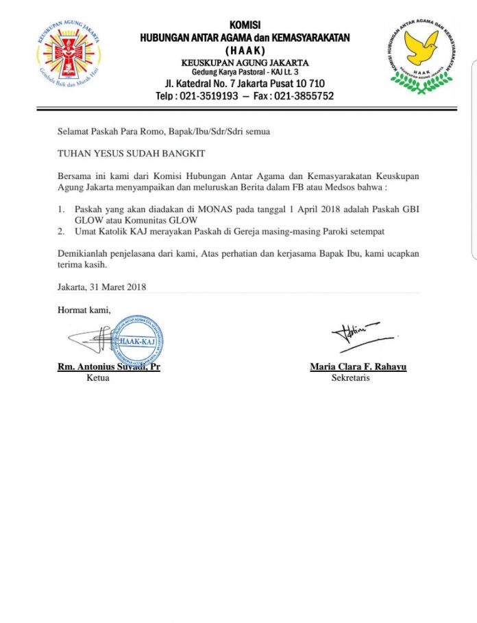 3. Para Pimpinan ARAS dan KAJ akan merencanakan Perayaan Paskah bersama umat Kristiani setelah tgl 1 April 2018.