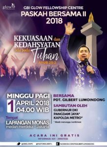 Dilansir dari laman glowfc.com, Gereja GBI Glow FC akan mengadakan ibadah dan perayaan Paskah Bersama II pada Minggu, 1 April 2018, jam 04.00-07.30 pagi di Lapangan Monas, Jakarta. Menurut rencana, acara yang tidak dipungut biaya tersebut, akan diberikan sambutan oleh Gubernur DKI Jakarta, Anies R.Baswedan.