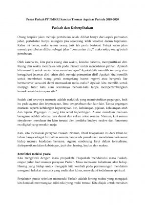 HIDUPKATOLIK.com – Pesan Paskah PP PMKRI Sanctus Thomas Aquinas Periode 2018-2020